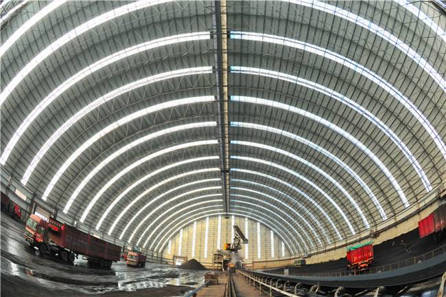 堆场料场封闭式主体结构为新型的钢新民网架结构,维修结构为钢结构新民不锈钢板和纤维增强塑料灯具,其外形以新民网架式和平板为主,连接柱新民施工自由,设置喷雾自动喷水系统,从而可以实现棚内所有物料的覆盖,减少物料在运输过程中的损耗,起到防尘的作用,减少工厂关闭后的二氧化硫排放量,50mg/m3颗粒排放量小于10mg/m3,非常适合低能耗。低闭库自动感应反应对库存轮胎进行清洁,确保轮胎不受道路污染;封闭的储存区可从源头控制粉尘污染,控制无序排放。